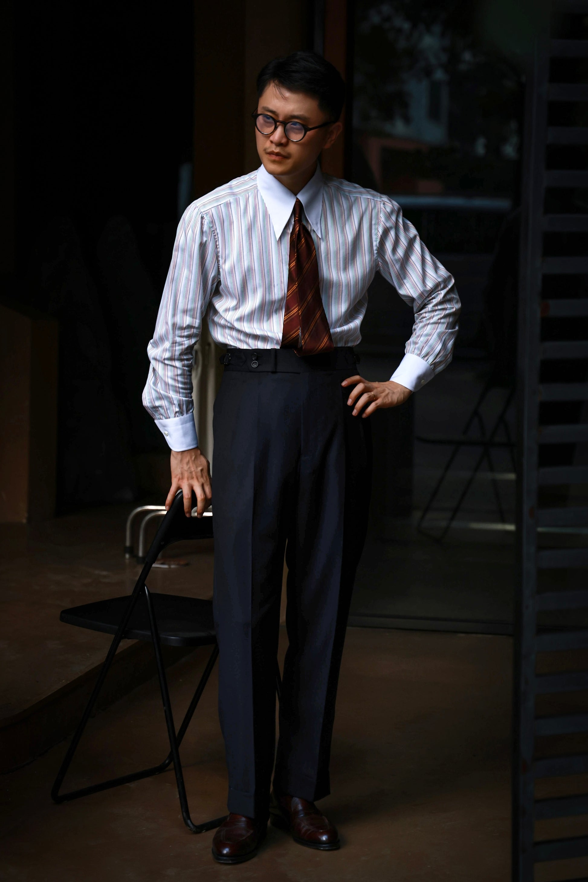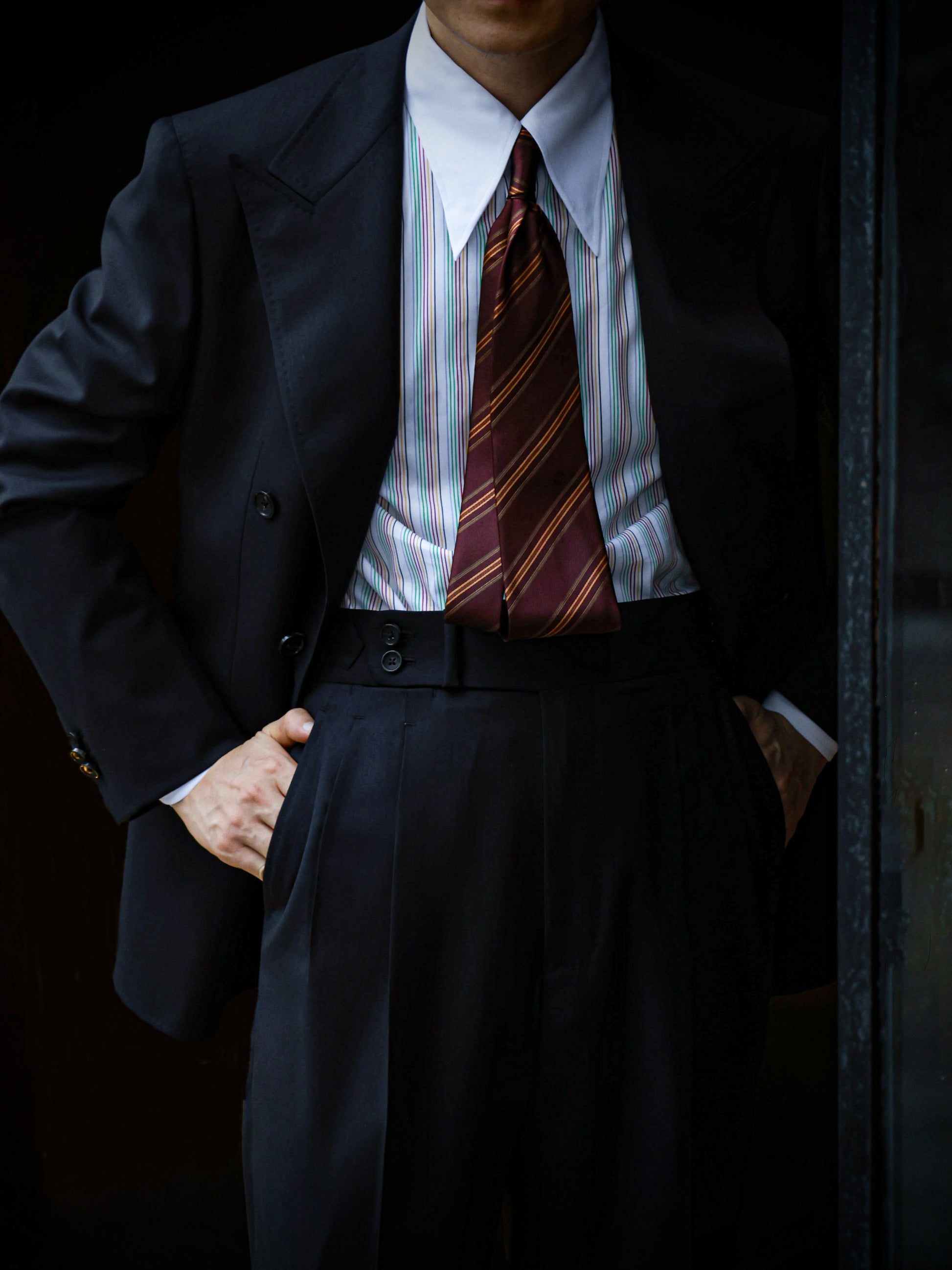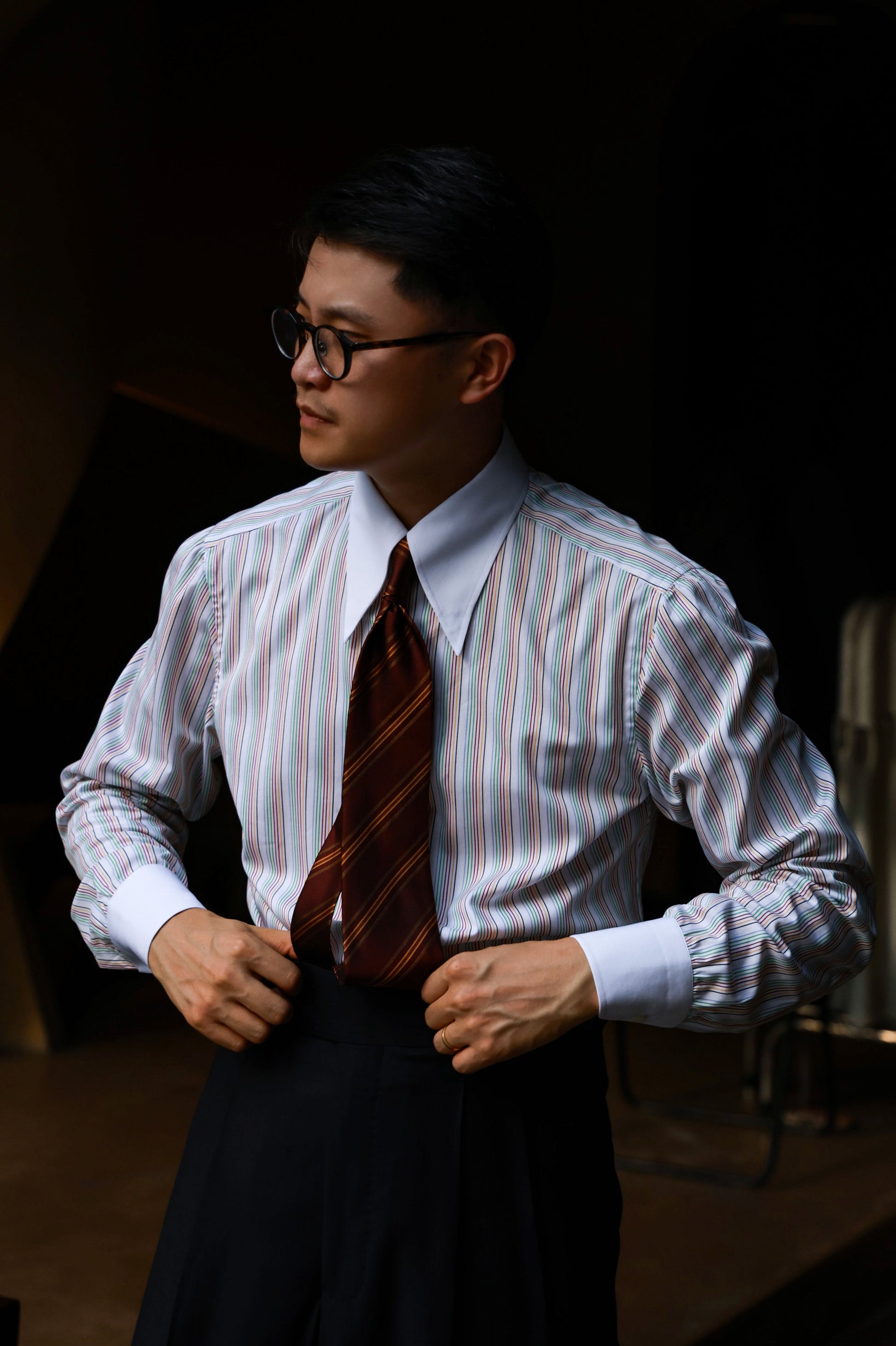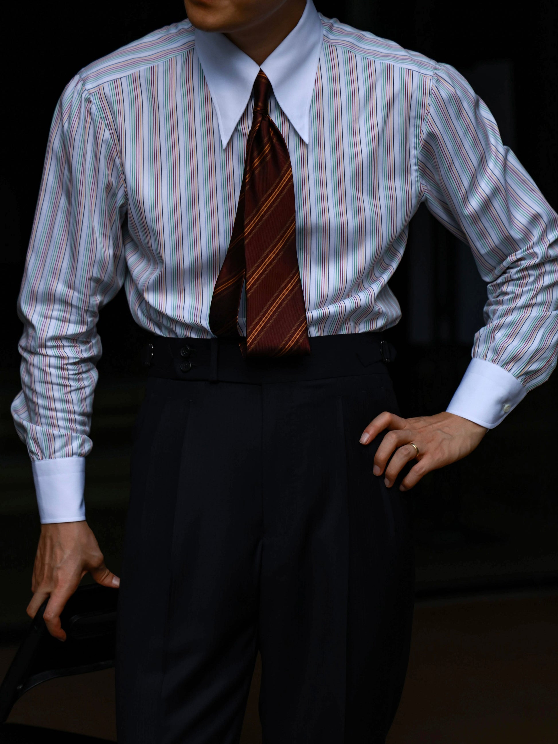 Handcrafted Long Point Collar Shirt with Contrast Collar & Cuffs — Capri Stripes