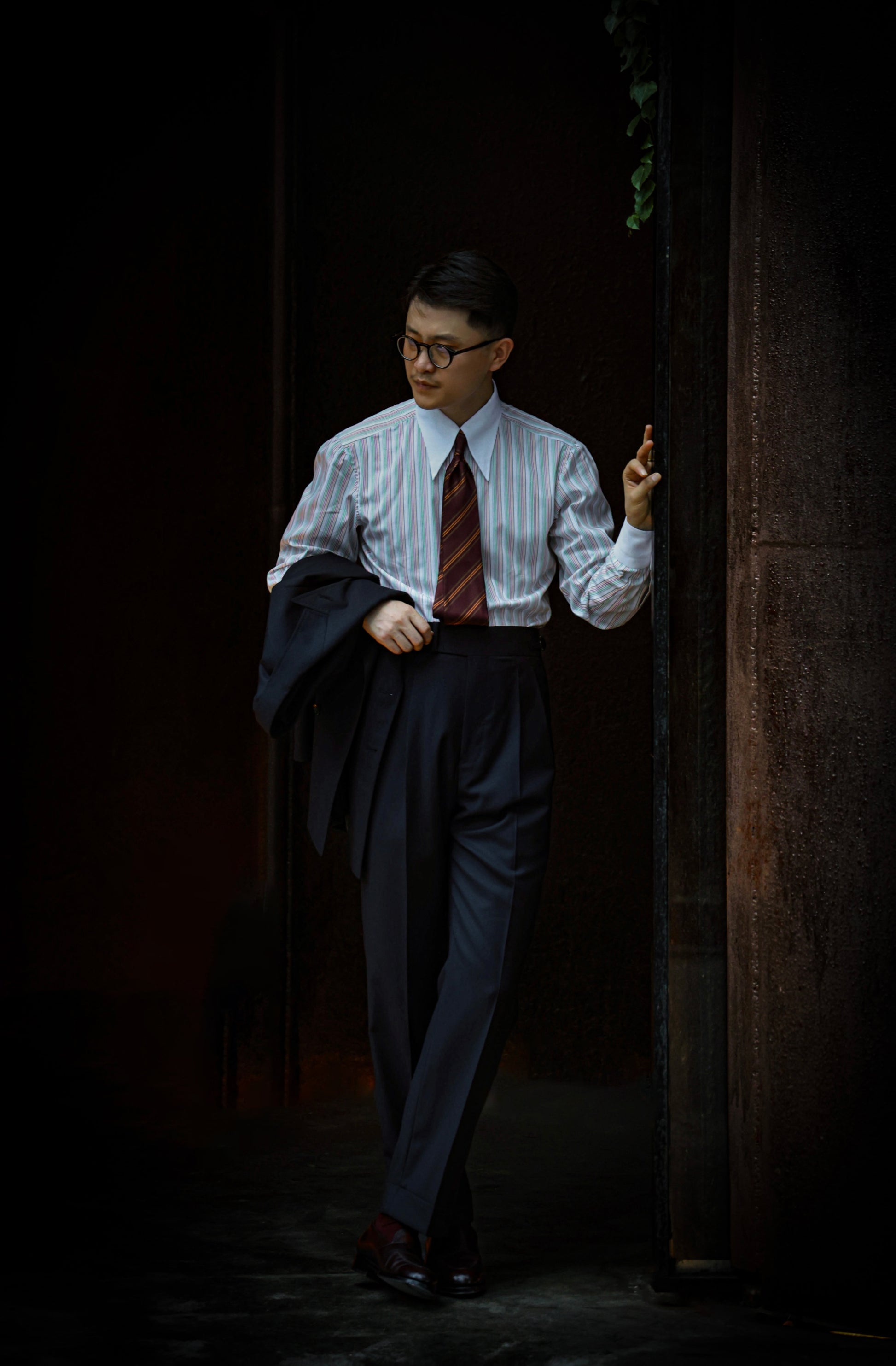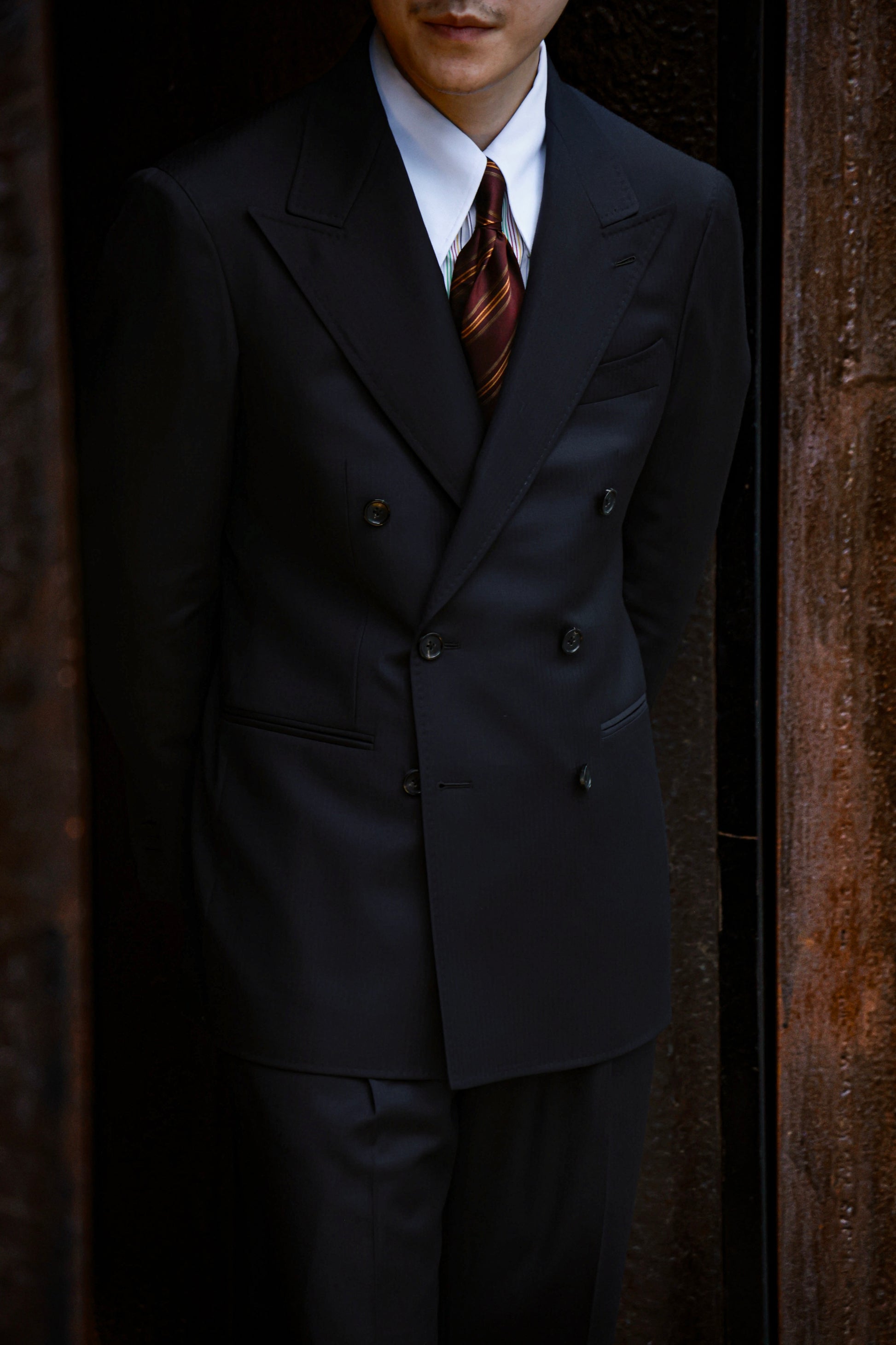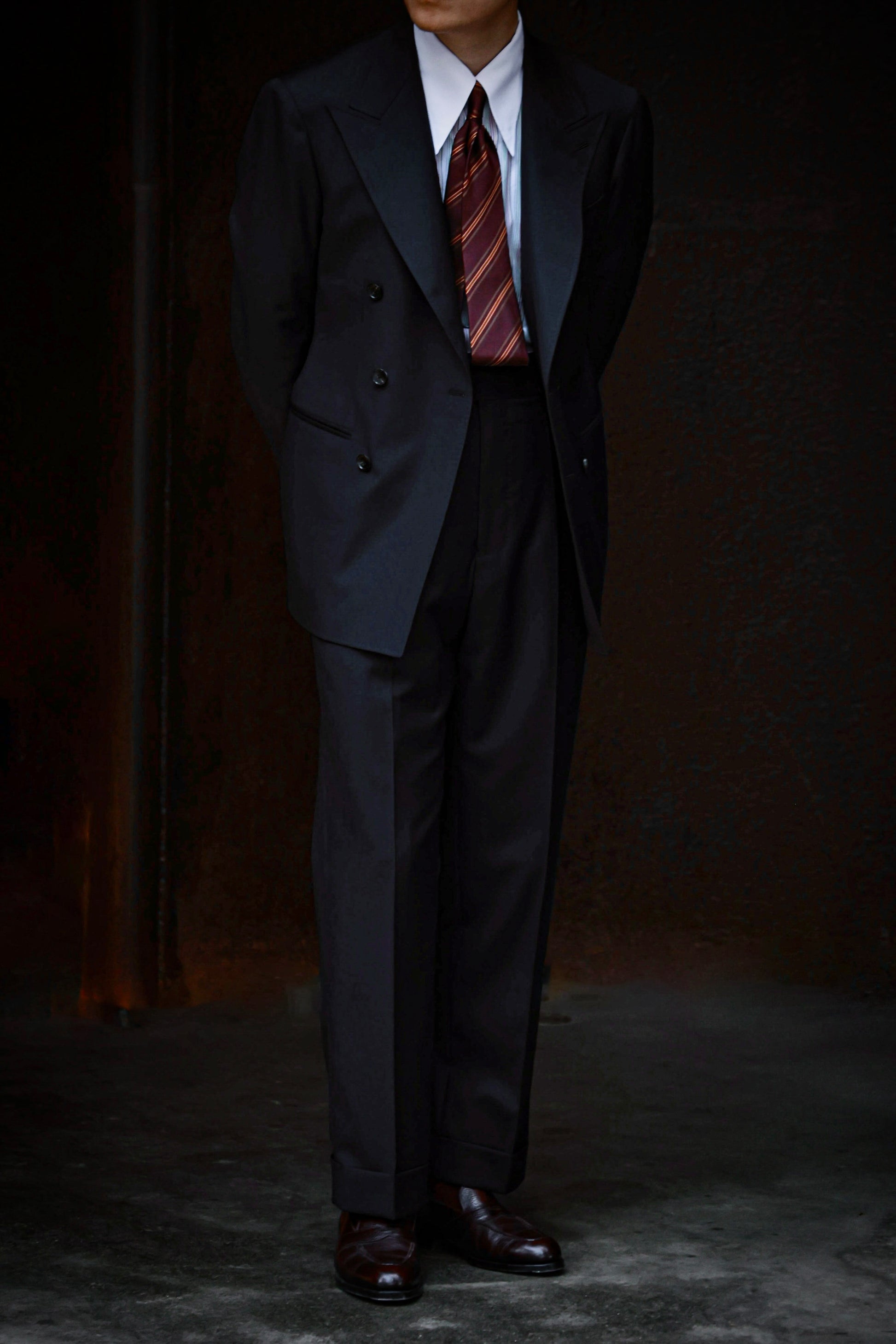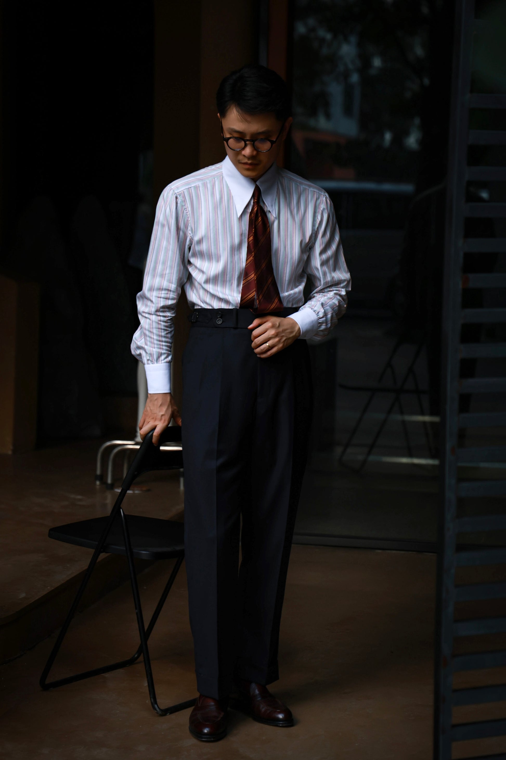 Handcrafted Long Point Collar Shirt with Contrast Collar & Cuffs — Capri Stripes