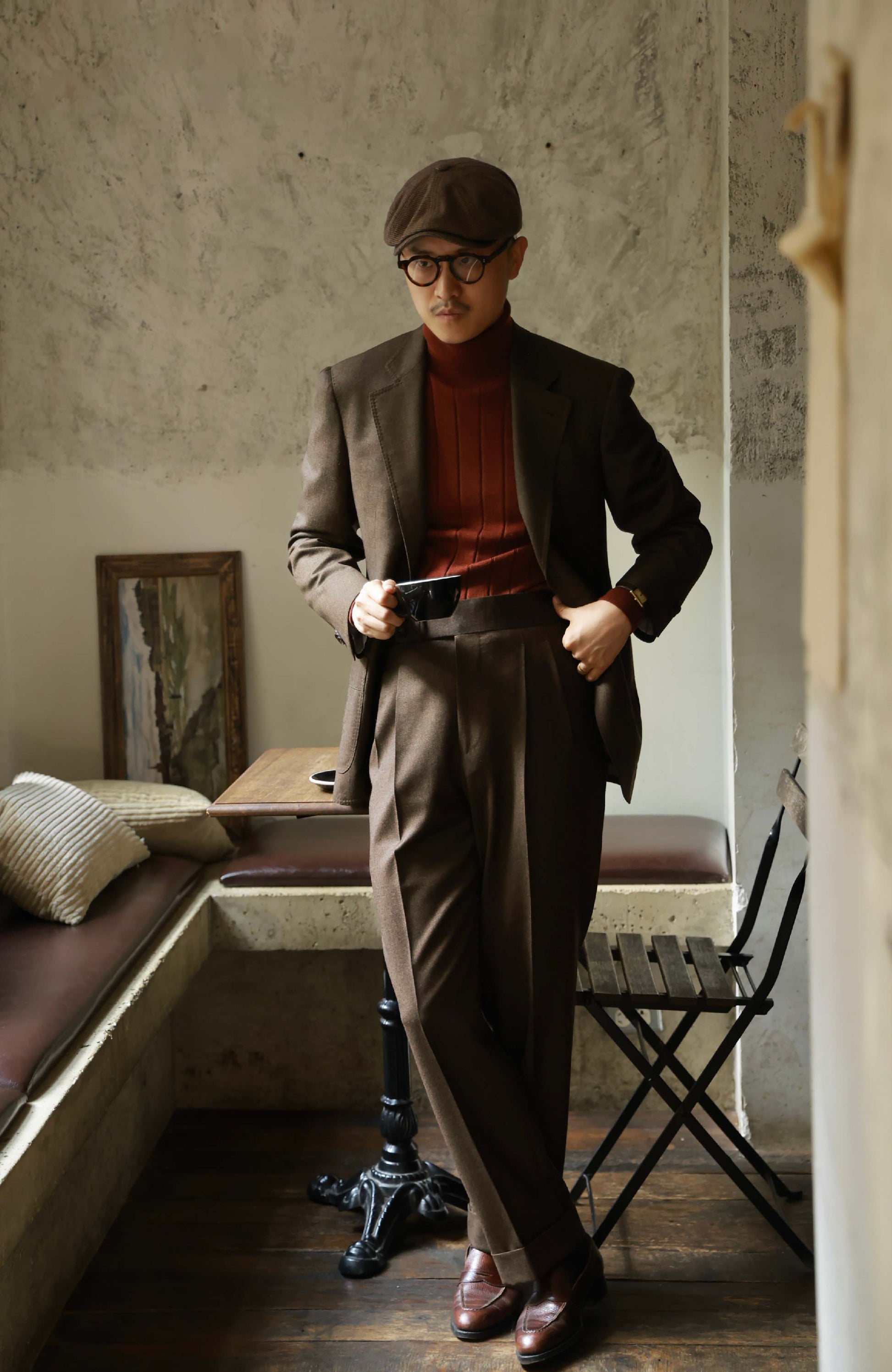 Merino Wool Ribbed Turtle Neck Sweater — Maple Red