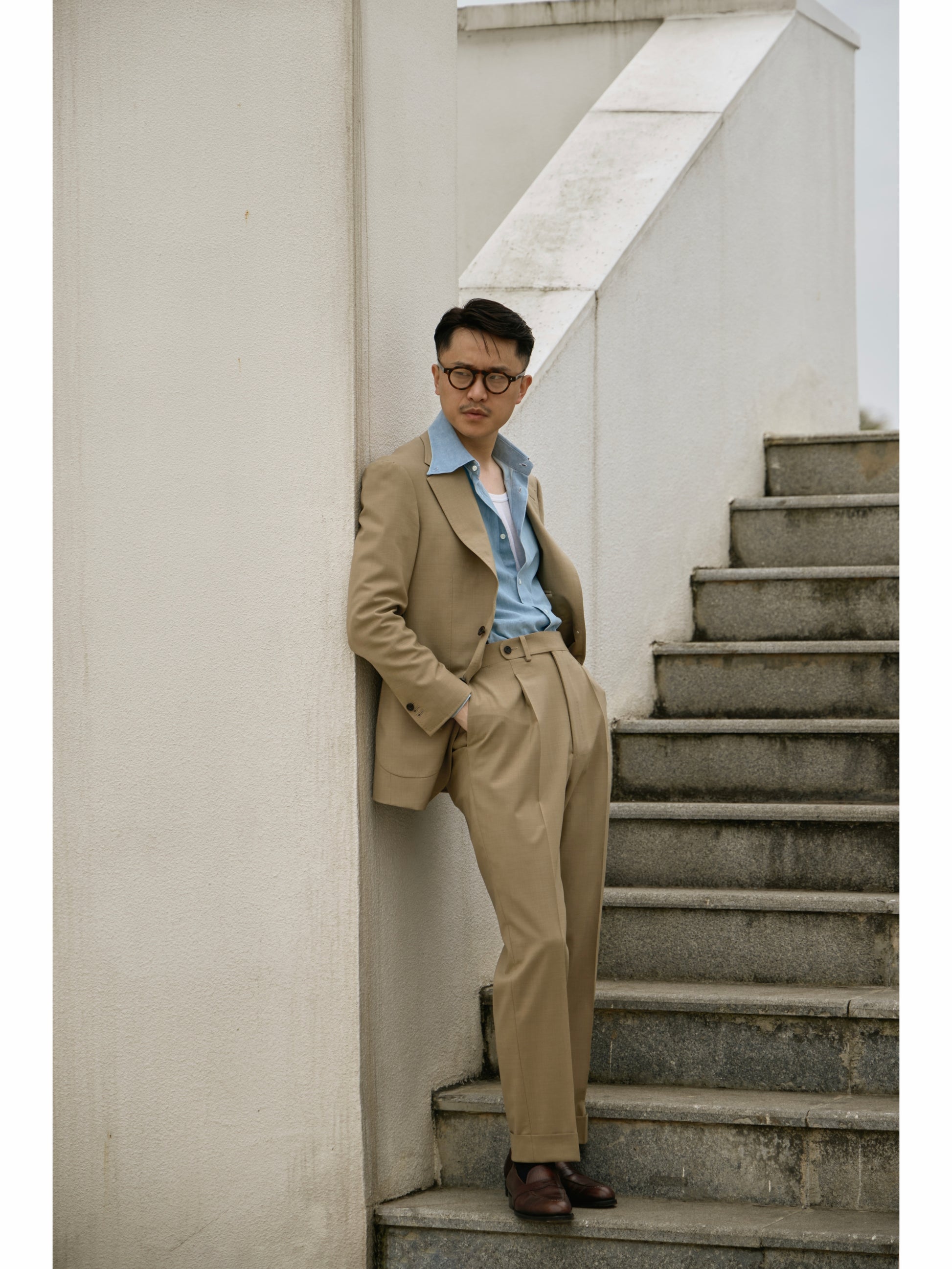 Please lay the trousers flat on the table.