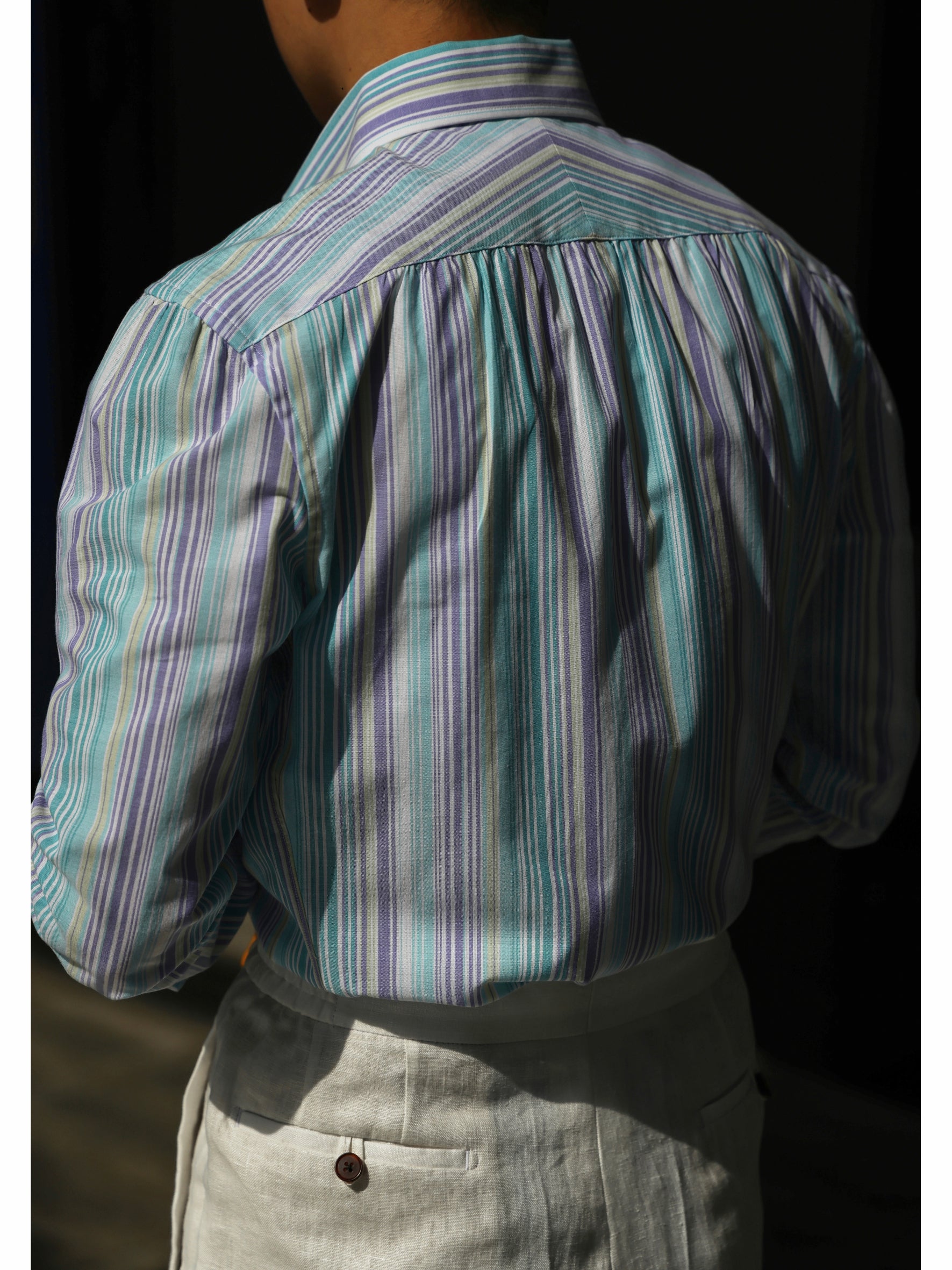 One-piece Collar Shirt — Santorini Turquoise stripe