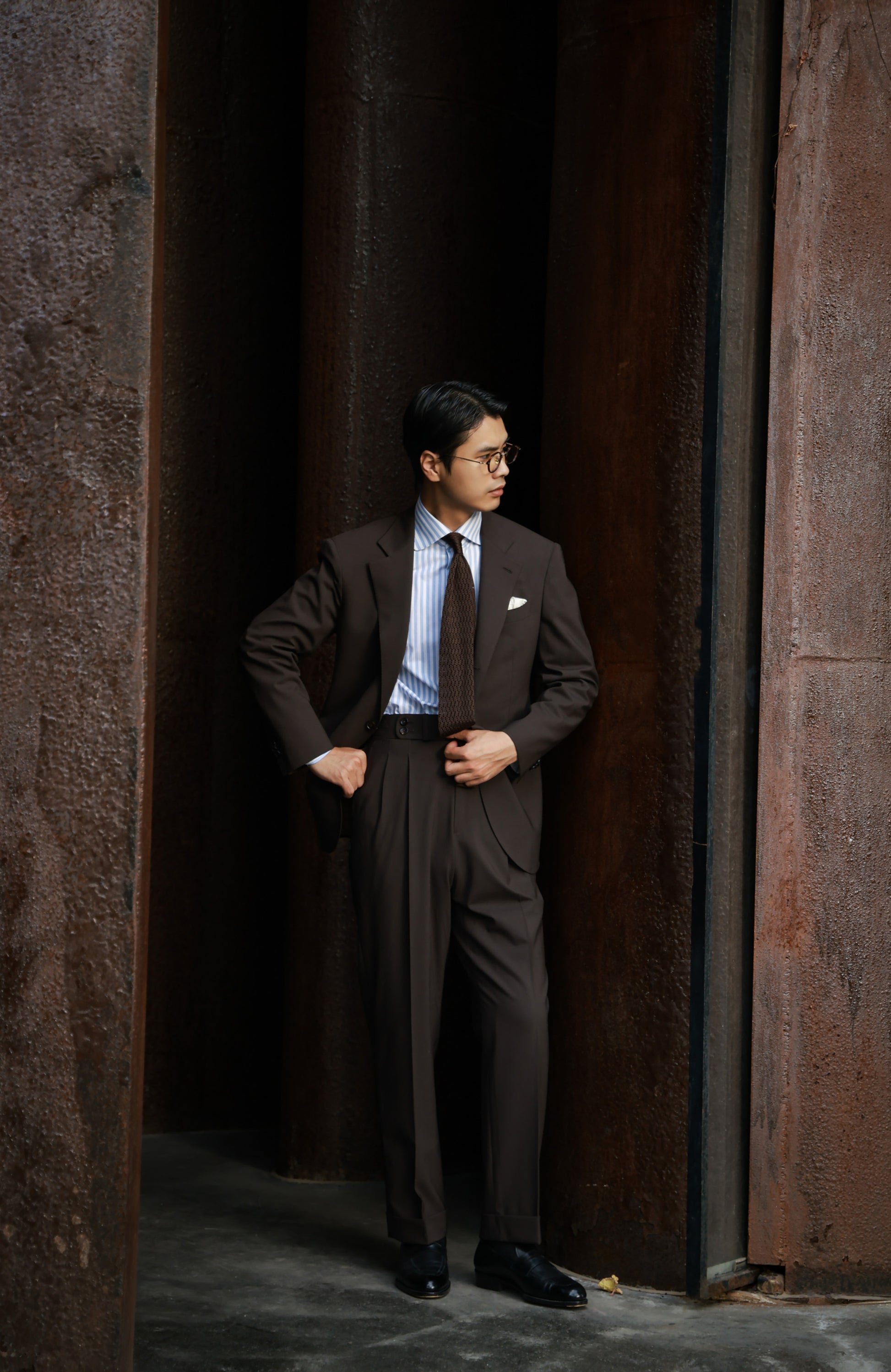 Suit Jacket with Half-Canvas and Notched Lapel — Brown
