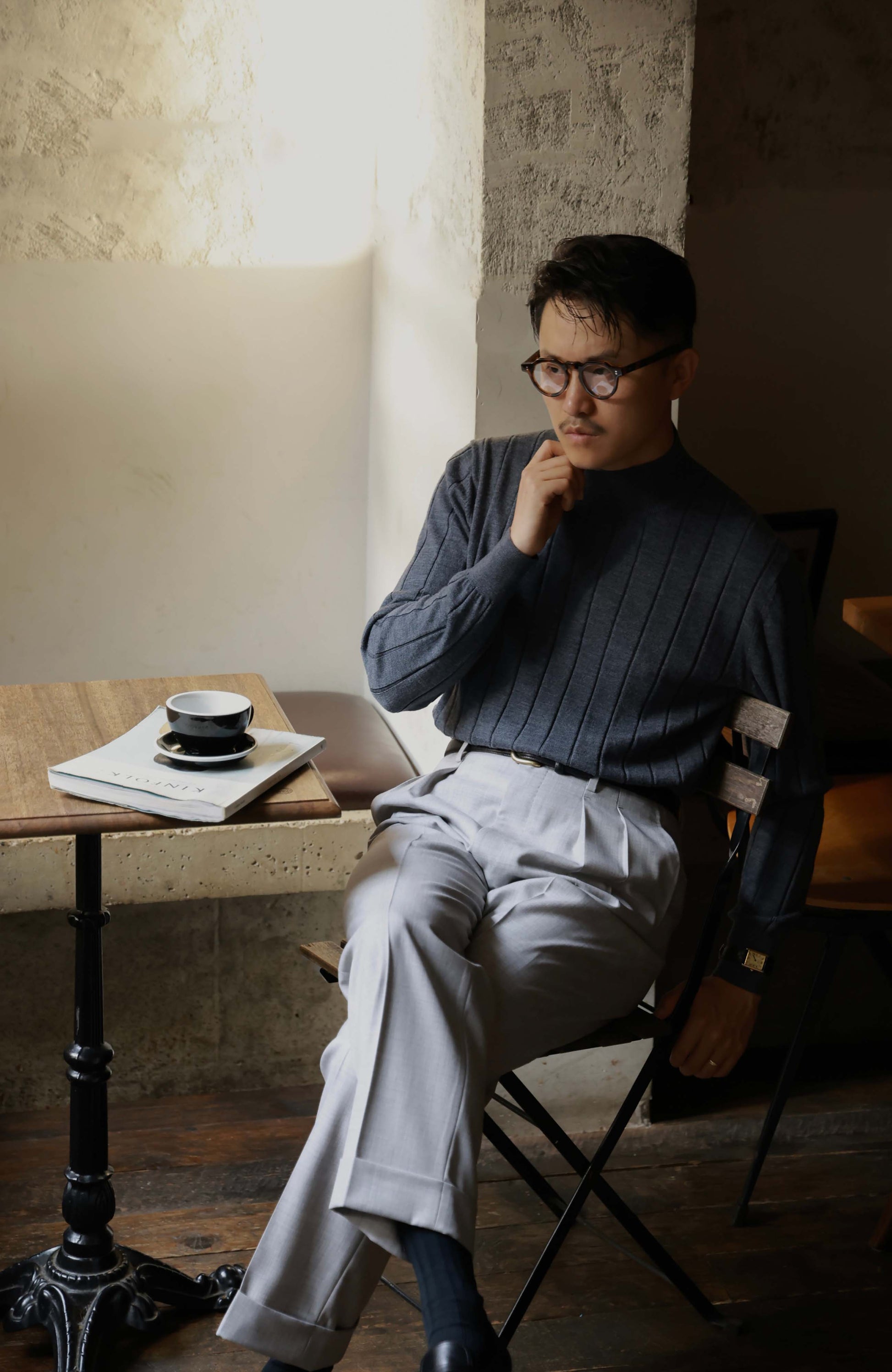 Suit Trousers with Hollywood-Waist and High-Waisted Double-Pleated — Mist Grey