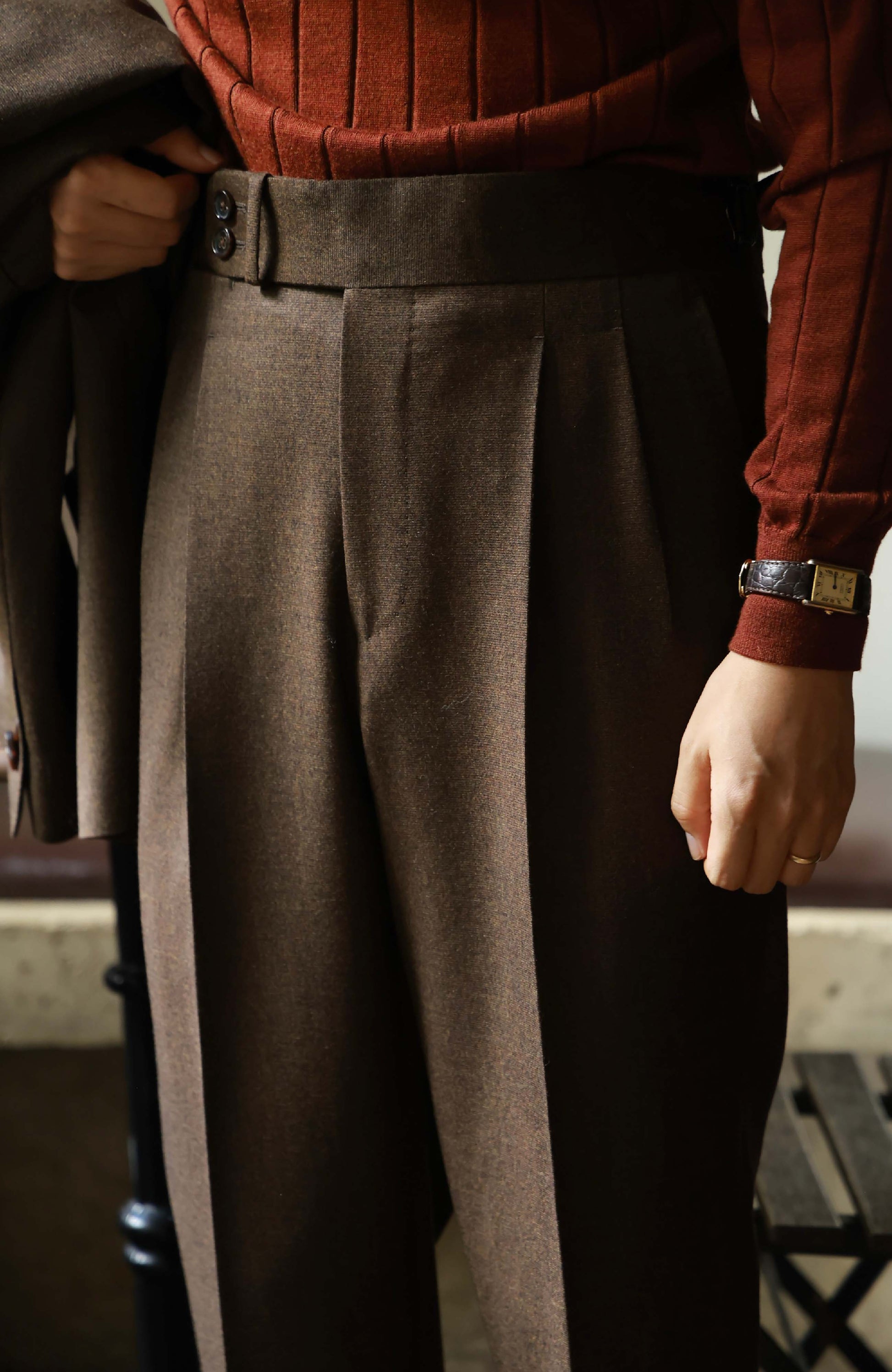 Please lay the trousers flat on the table.